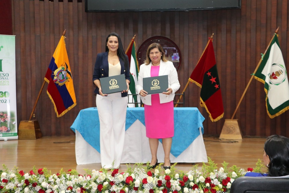 BOLETÍN DE PRENSA BP.012-DCS ¡JUNTOS POR BOLÍVAR! La Ab. Ledy Laura Muñoz alcaldesa del cantón Bolívar, y la Ec. Miryam Félix López Rectora de la ESPAM MFL, suscribieron un Convenio Marco de Cooperación Interinstitucional, entre la Alcaldía de Bolívar, y la Escuela Superior Politécnica Agropecuaria de Manabí “Manuel Félix López”; con la finalidad de fortalecer el trabajo interinstitucional y aportar al desarrollo integral del cantón Bolívar. El acto, se efectuó en el Auditorio de la Carrera de Medio Ambiente, como parte del III Congreso Internacional de Vinculación con la Sociedad. “Hoy, es un día histórico para nuestro cantón, hemos firmado el primer convenio marco, que nos permitirá seguir trabajando incansablemente, pensando siempre en el desarrollo integral de cada uno de los bolivarenses”, señaló la autoridad. La Ec. Miryam Félix López Rectora de la ESPAM MFL, resaltó “nos sentimos muy contentos, ya que, es la primera vez que se suscribe un convenio entre la Universidad y la Alcaldía de Bolívar; creo que juntos haremos de Calceta grande”.