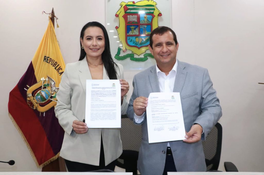 BOLETÍN DE PRENSA BP.001-DCS-25 DE MAYO DEL 2023 Convenio aportará al desarrollo del Cantón Bolívar. Basados en la transformación y el trabajo coordinado y articulado, la Alcaldía de Bolívar y el Gobierno Provincial de Manabí (GPM) suscribieron un convenio marco que beneficia al Cantón. Este acuerdo, firmado la tarde de este 24 de mayo en el salón auditorio del GPM, consiste en implementar y mejorar la vialidad, el desarrollo social, fomento productivo, ambiental, turismo, cultura y patrimonio, entre otros. Durante la jornada de trabajo con la Prefectura de Manabí, la alcaldesa Ledy Laura Muñoz presentó su proyecto para los primeros 100 días de su gobierno, y el PLAN BOLÍVAR 2040. «Toda obra que se haga por parte del Gobierno Provincial de Manabí conjuntamente con nosotros, tengan la plena seguridad que la ciudadanía sabrá que es un trabajo articulado con el GPM”, explicó la alcaldesa Ledy Laura Muñoz. ¡Juntos construiremos el Bolívar que merecemos! #InicióLaTransformación #ElBolívarQueMerecemos